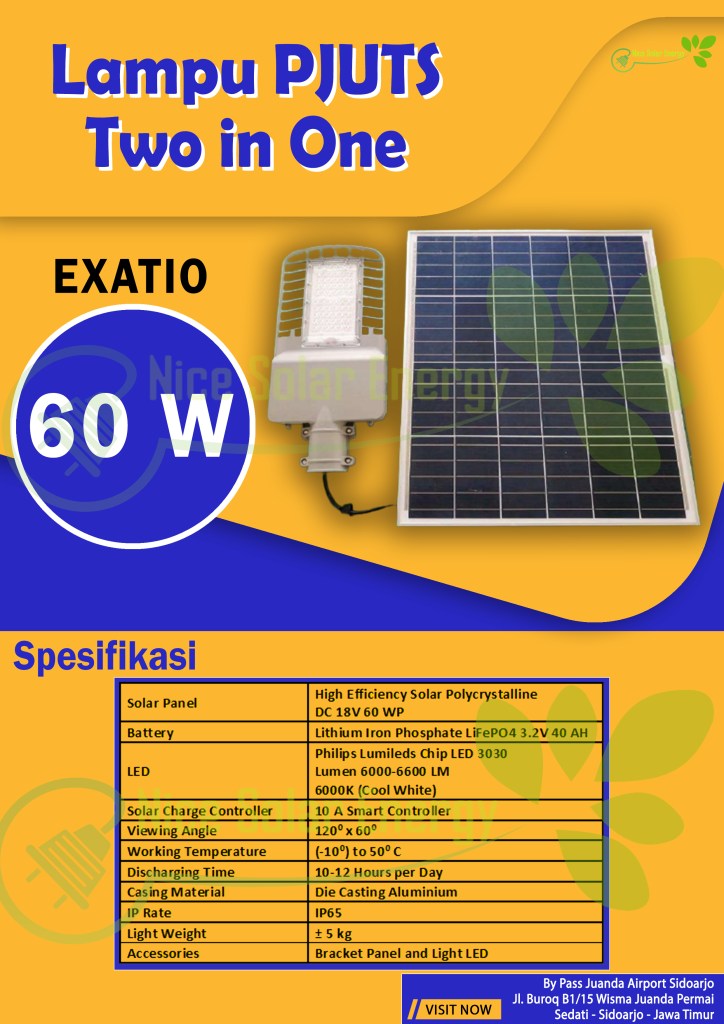 Kelebihan Paket PJU Solar Cell 60 Watt 2in1 :