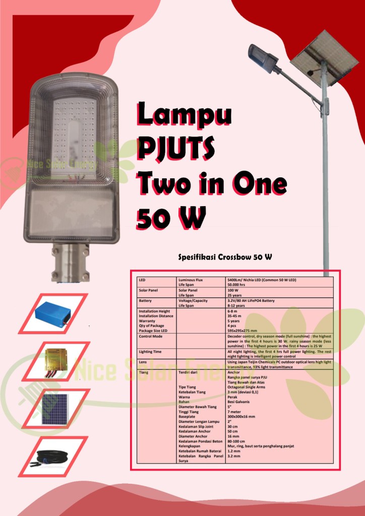 Kelebihan Paket PJU Solar Cell 50 watt 2in1 :