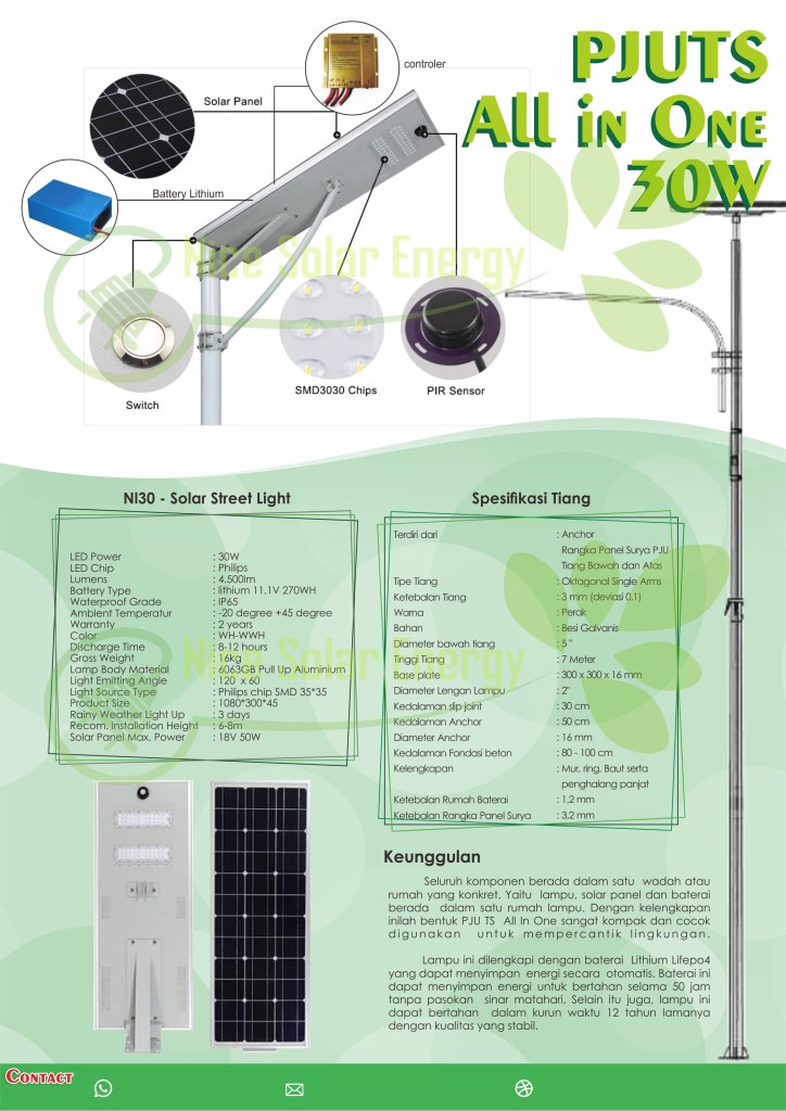 Paket PJU Tenaga Surya type All In One adalah produk terbaru sangat praktis dan effesien. Tidak lagi memerlukan box battery yang sangat besar dan berat sehingga estetika produk terpasang dilapangan sangat rapi dan indah.